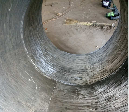 洛陽融基工貿有限公司的RJ-YHL-2.0-3.0高分子陶瓷聚合物耐磨涂層(洛陽融基工貿公司專利產品)是一種可以在高溫中起到耐磨防腐作用的耐磨涂層,RJ-YHL-2.0-3.0耐磨防腐涂層在脫硫管道里的應用效果與涂層的厚度有關,每2mm耐磨層的耐磨性能是碳鋼1-4倍,也就是說如果做3mm厚,可以達到平均使用壽命2-6倍,且施工簡單,效率高。足以保證脫硫管道的正常輸送任務。