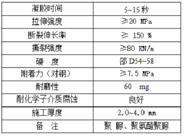 RJ-SPUA-401超重防腐材料是由半預聚體、端聚醚、胺擴鏈劑等原料現場噴涂成型的第三代聚脲彈性體。該技術將新材料、新設備和新工藝有機地結合在一起,是傳統施工技術的一次革命性飛躍,是目前國際上最先進的施工技術之一。