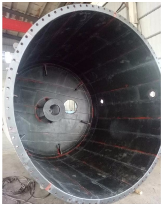 1、襯膠防腐碳鋼罐粘結良好、平整、無凸凹現象。