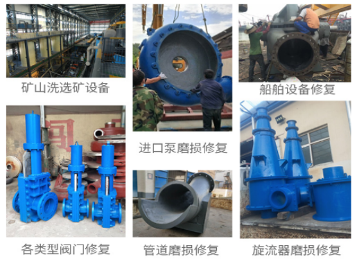 主要應(yīng)用于:選礦設(shè)備過(guò)流沖蝕磨損修復(fù),如:旋風(fēng)分離器,浮選柱,浮選機(jī),泡沫罐,分級(jí)機(jī),攪拌罐等設(shè)備的預(yù)涂耐磨層,溜槽的維修,管道配件,渣漿泵和其他設(shè)備(典型用途請(qǐng)參見主要物理和機(jī)械性能表)。
